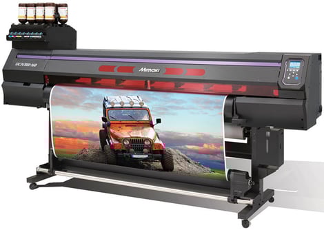 Impresora y cortadora de Gran Formato Mimaki, para impresiones de alta resolución con relieves, por su particularidad de poder imprimir por capas, con tinta blanca.